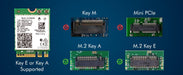 Module is 22x30mm and should only be used in Laptops with an M.2 connector and a standard Key A or E socket or desktop with an M.2 slot printed with "WiFi" logo.